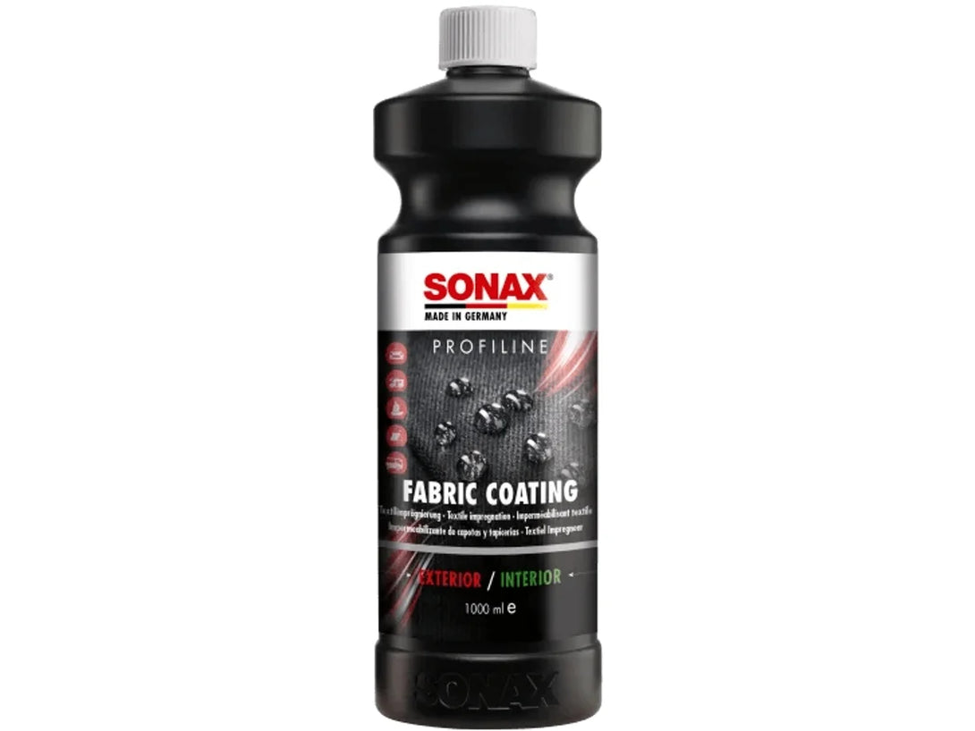 Sonax PROFILINE Impermeabilizador Tecidos Profissional com fórmula inovadora sem resinas de fluorocarbono para impermeabilizar capotas, assentos, tecidos para exteriores e outras aplicações domésticas, tornando a superfície extremamente repelente à água (ângulo de contacto >150º).